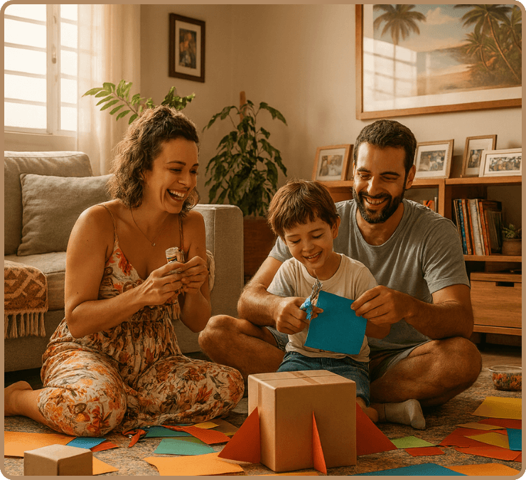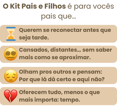 Porque o Kit Pais e Filhos foi criado para pais e mães reais, com pouco tempo e muita vontade de criar conexão.