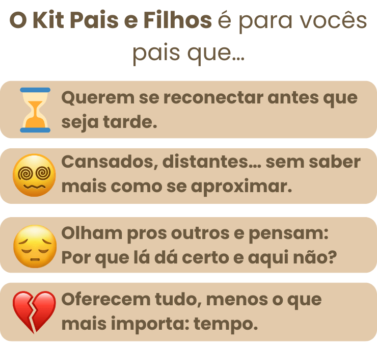 É por isso que o Kit Pais e Filhos vai te dar tudo que você precisa para criar momentos de qualidade com seus filhos em apenas 10 minutos por dia.
