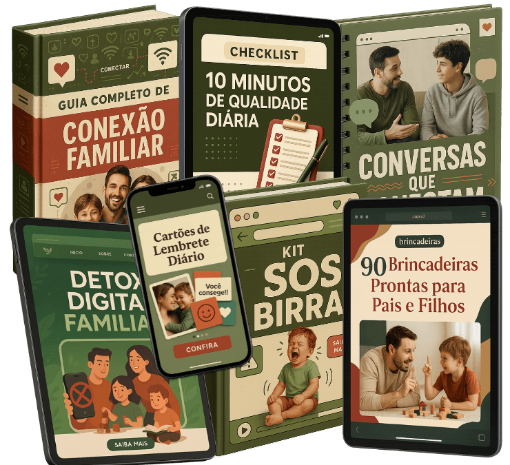 Aplique o Guia de Perguntas que Conectam com perguntas e gatilhos prontos para criar diálogos reais com seu filho.